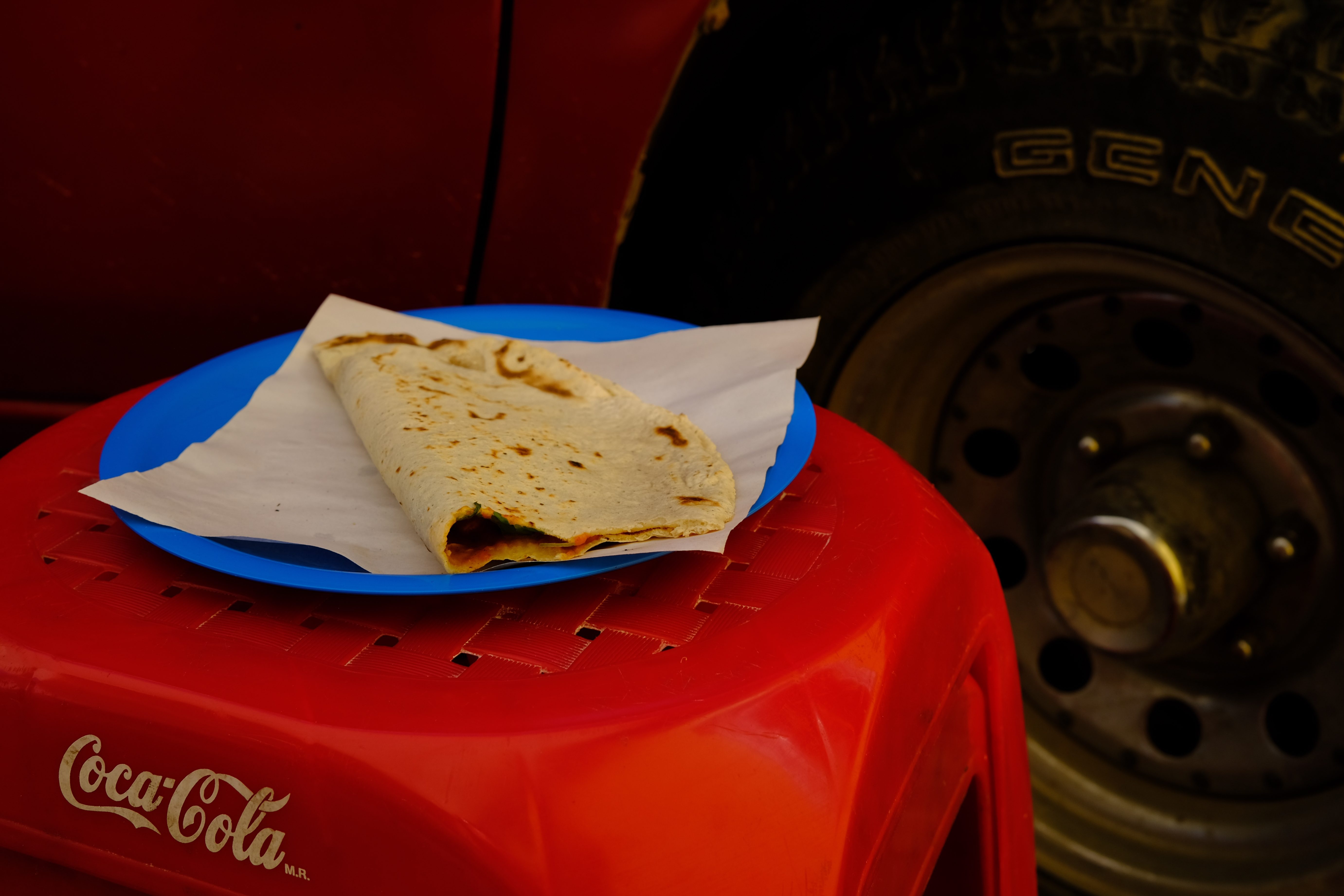 Quesadilla, Coca-Coca Stool, and Truck. Oaxaca, Mexico. 2021.