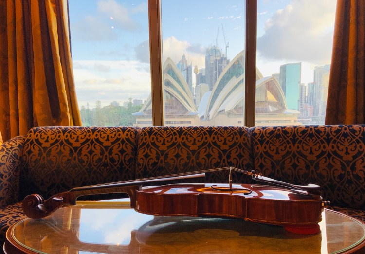 Viola With View of Sydney Opera House. MS Amsterdam Cruise Ship/Sydney, Australia. March 2020.