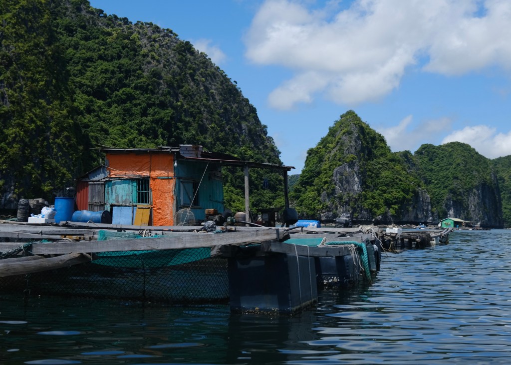 Our tour wasn’t just spent onboard the ship — on the first day we took a tender to a nearby beach for a couple hours of swimming. I was surprised at how much garbage could be seen floating in these waters — and I don’t know who’s really to blame for this: tourists or locals? On the second day we went out for an hour of kayaking, where we could get up close to the floating villages that reside near to Cat Ba Island.