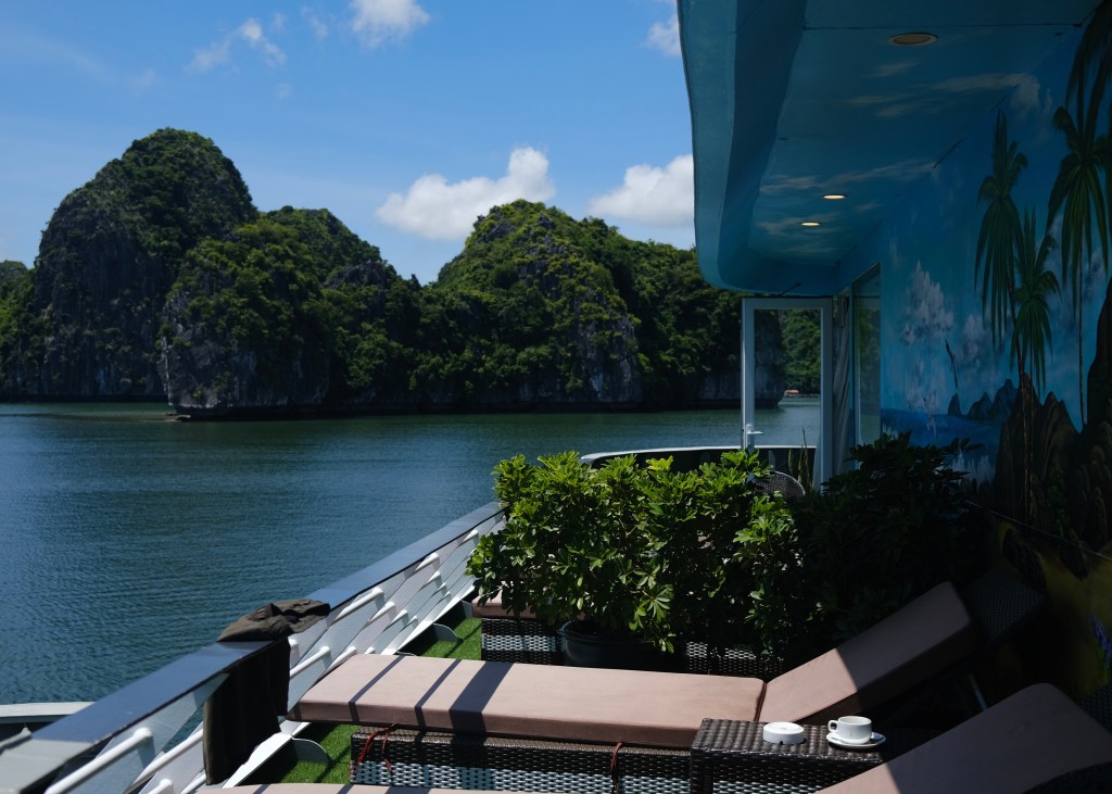 The tour included a 2.5 hour bus/ferry transfer from Hanoi on through Cat Ba Island and onto our ship. Given that this tour was booked entirely by backpackers none of us were given private rooms, but I still had my own bed in a spacious room at the very front of the ship with an incredible balcony.