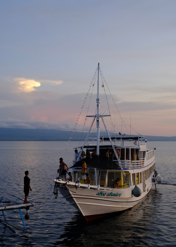The tour met at the port of Bangsal on Lombok. The whole morning was spent checking in and then driving across Lombok to the port. On board there was a surprising mix of ages, with both young backpackers and some of retirement age. The demographic was all Europeans, Australians, and then me … the one American.