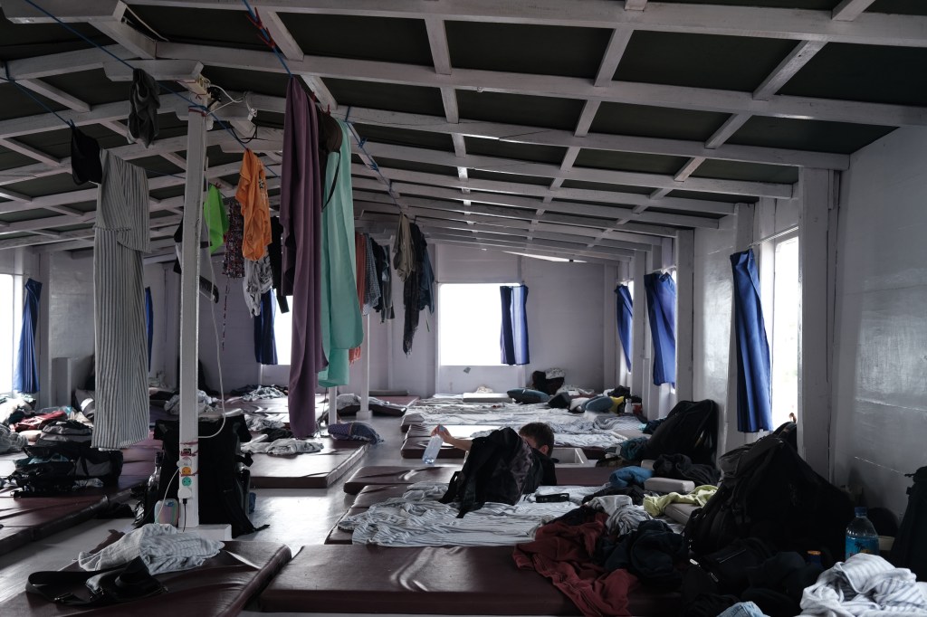 On the second day we were woken up around 5:30 AM — “It’s whaleshark time!” said a crew member. By the time I had changed into a swim suit there were plenty of people already in the water with the provided snorkel gear. A local fishing boat poured food to attract the sharks.