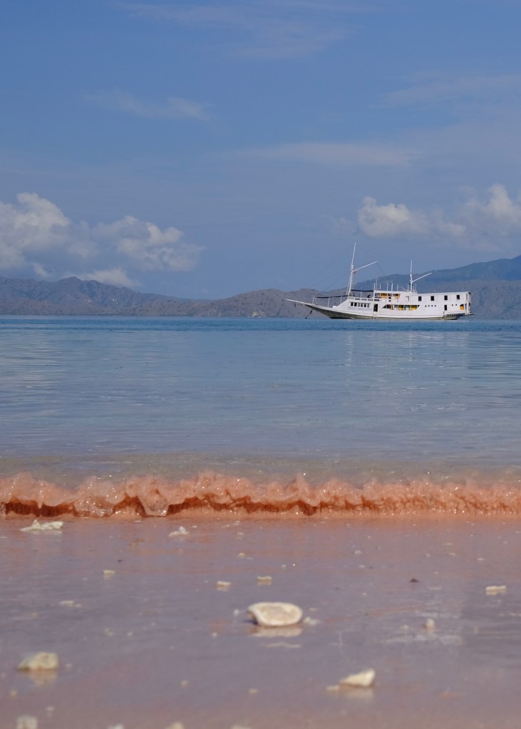 The next morning we spent a couple hours snorkeling and chilling along the pink beach. The color is only faintly pink, created from broken red coral that’s washed ashore. A clock without hands floating amongst the pink sand seemed to be a reminder that not only was the tour nearly over with, but so too was my trip through SE Asia. The lack of hands had me further questioning my relationship with travel — for how long would I be setting out on these types of trips before finding a more settled life that I crave?