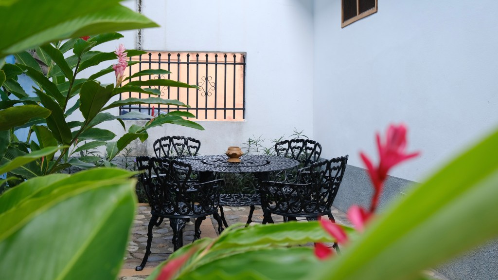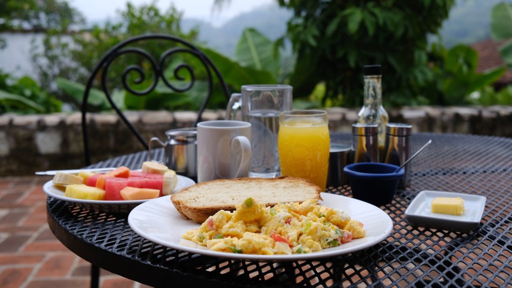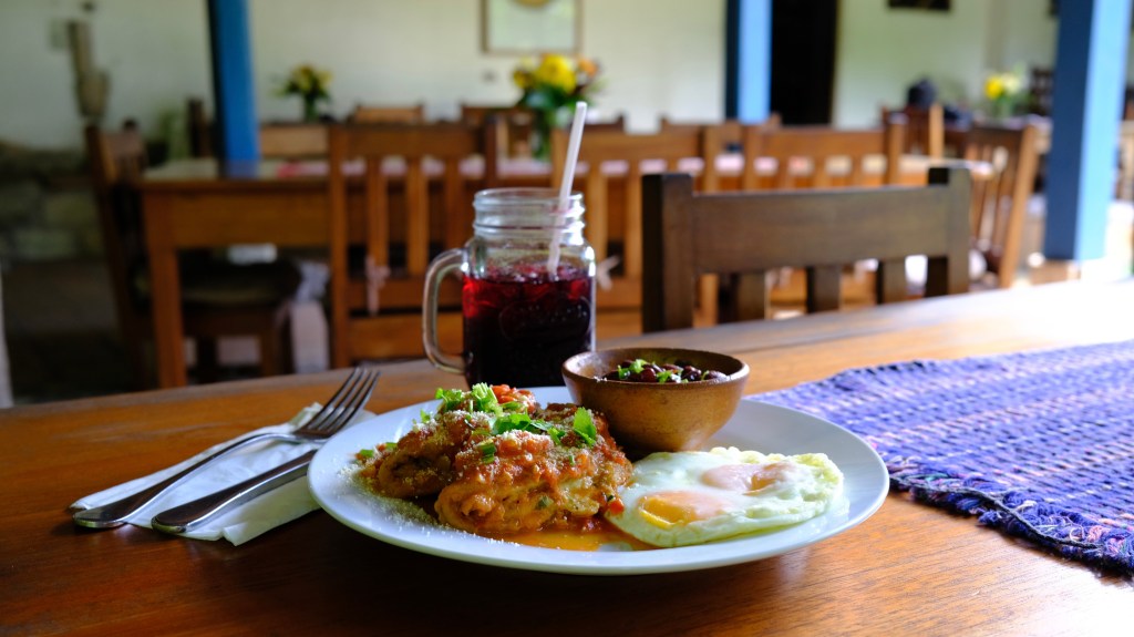 My hostel, La Iguana Azul, was a picturesque and affordable accommodation. It is connected to a boutique hotel with an outdoor restaurant patio. There I enjoyed a massive breakfast each morning, costing a mere $7. My job these past two months has been a social overload, so I really loved how quiet it was on this patio. It felt like a luxury to spend the early mornings alone facing the misty hills, with delicious food on the table, and a book in hand (I’m currently reading Bill Bryson’s In A Sunburned Country).