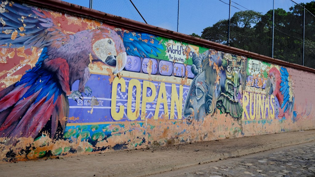 The town of Copán Ruinas is one of the most charming that I’ve seen in my travels. Small red tuk-tuks seemed to outnumber the actual number of tourists, and they could always be found speeding through the exceptionally hilly cobblestoned streets. Unlike the ones in South East Asia, these Tuk-Tuk drivers never pushed me to use their services. Copán’s architecture includes plenty of colonial era hotels and restaurants, along with colorful street art. My favorite place in town was in the square – here children kicked around soccer balls (fútbols?), and locals otherwise congregated. My intention for this trip was primarily to relax, and so I spent plenty of time here each afternoon reading my book and people watching.