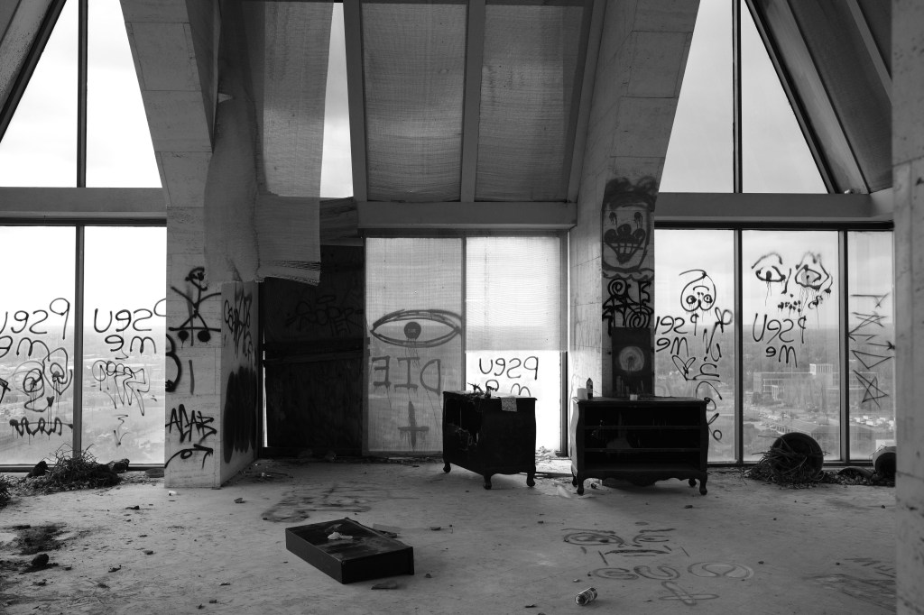 One of my more exciting moments on tour happened in Augusta, Georgia. I had never been here before — I enjoyed the scenic river-walk facing the border with South Carolina. Within the city sits a skyscraper called the Lamar Building – it was clearly abandoned given the graffiti visible on the peculiar glass penthouse at the top. One of my tour-mates discovered a broken-in entrance and climbed the stairs to the penthouse. This sounded adventurous and I needed an adrenaline rush, so I went in sometime afterwards. This was a thrill I won’t soon forget – about 15 floors from the bottom and on my way down I heard a door close somewhere on that floor … presumably someone lurking in the building. Needless to say I booked it the rest of the way out of there!