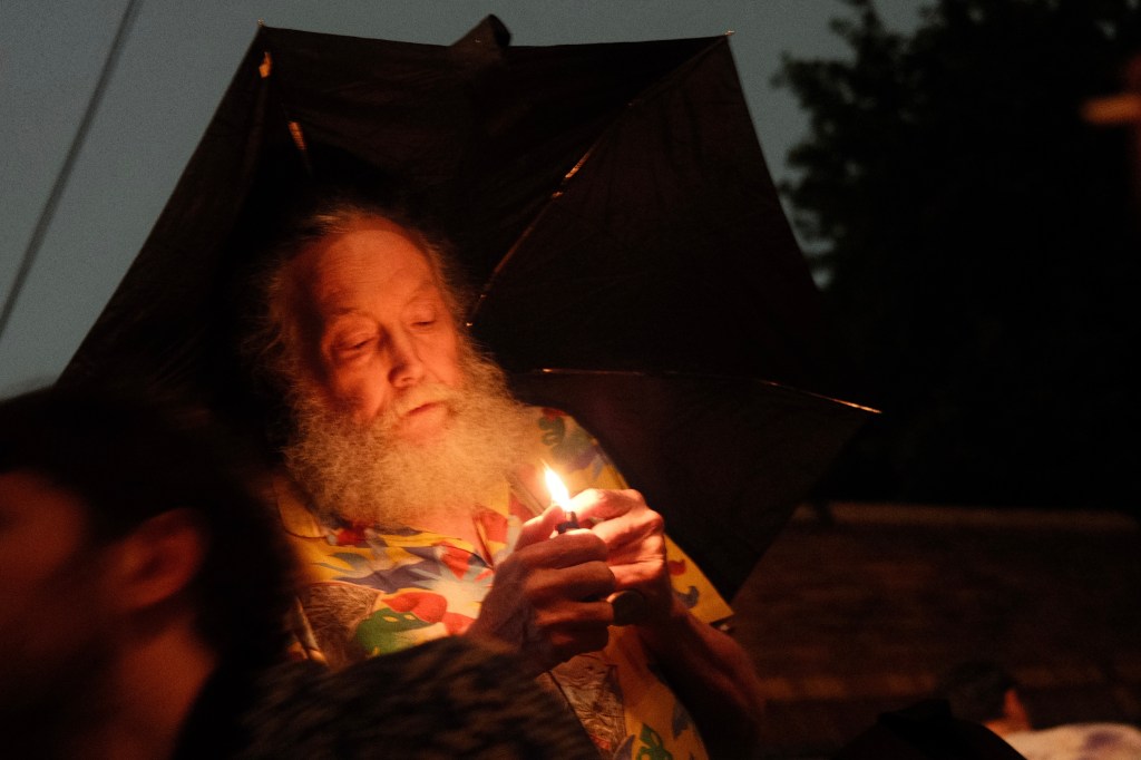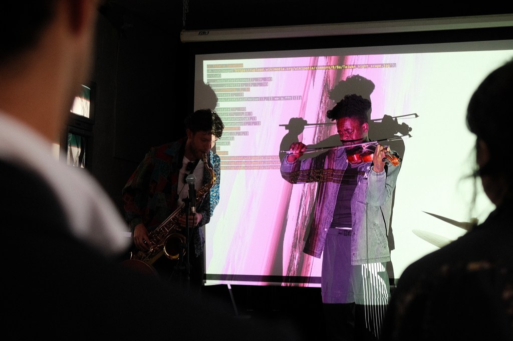 For this there were a dozen or so audience members huddled together under a tent, with abstract paintings hung up on the yard-side fences and piles of old televisions set up in the garage space all playing the same psychedelic video sequence throughout the evening. There was a “bar” consisting of a cooler with a Venmo link for payment. Some light rain towards the end had us all move inside the house, where we gathered in the basement for an intimate performance by a local jazz singer/songwriter together with some poetry and even more television displays.