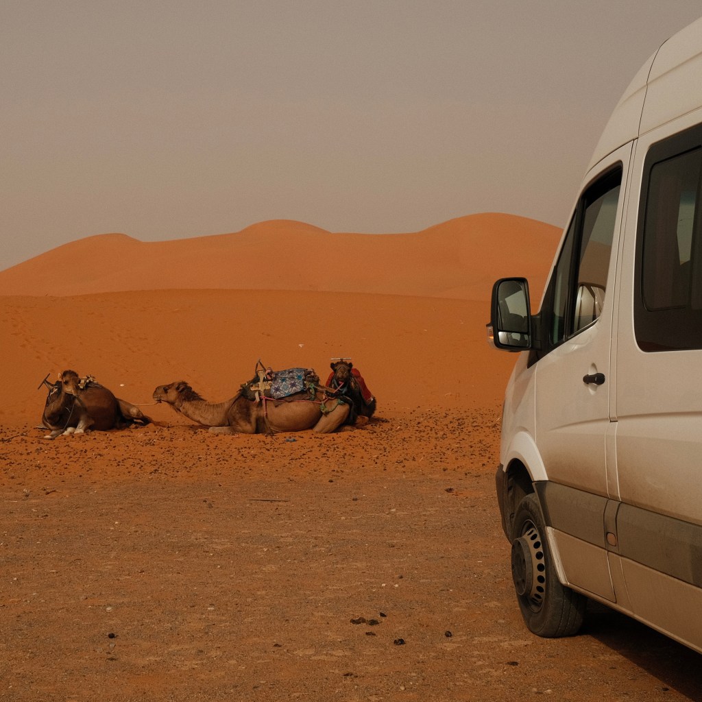 For whatever reason, in Merzouga our van made several stops so the driver could split up our group to meet different caravans of camels. We couldn’t understand why we weren’t all going to the same camp, as we’d just spent two whole days getting to know one-another. Rodrigo and I were paired with a couple of Moroccan tourists, and sadly had to part ways with some Europeans we had befriended. Once everything was in order there was an exhilarating jeep ride into the dunes, where we then waited some time for our camels to arrive. Here we met a few new people that would join us to camp, including two Czech siblings named Mateo and Emma.