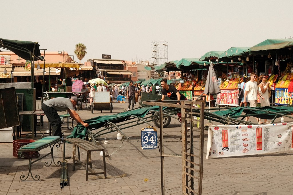 As such, I didn’t have high hopes for Marrakech. But to my surprise, my train from Fes rolled in directly after an apparently rare summer thunderstorm had passed through. The long walk to the Medina was pleasantly cooler than I anticipated. Along the way I observed the terracotta, and almost salmon color of the buildings – contrasted to the pale tan pallet of Fes.