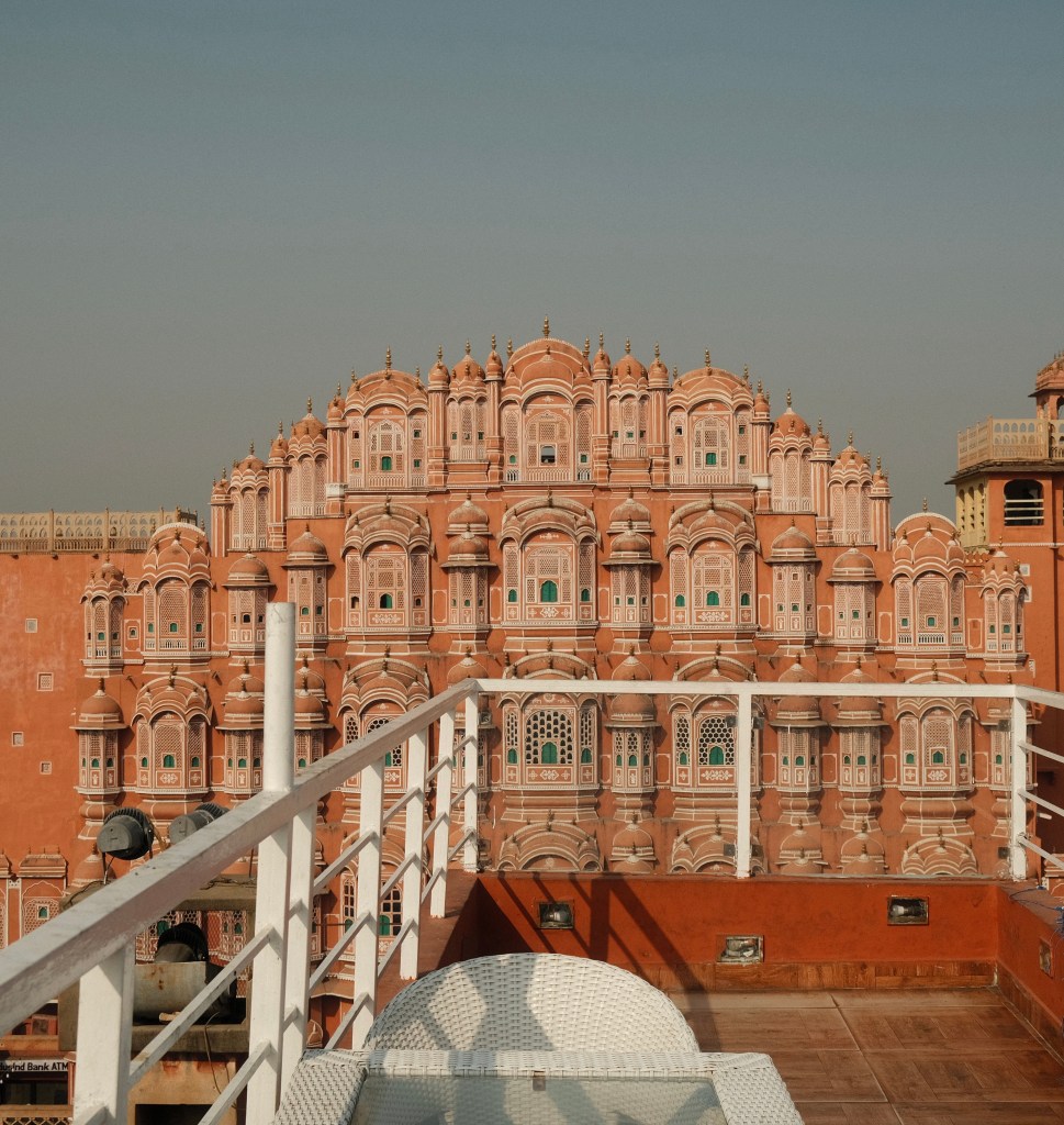 The next day exploring Jaipur is where the real cultural assault of India bore down on me. That morning started nicely with a long walk to the Pink City, towards the iconic Hawa Mahal. If the Taj Mahal is to India in general, then the Hawa Mahal is to Rajasthan. It’s the most beautiful and yet bizarre structure, with a faint lack of symmetry that drove the visual artist in me insane. Most people there took selfies just below in the street, but I wanted a straight on view for my photos. I found just that at a rooftop cafe across the street. Despite the bustling traffic below, there was no-one at the cafe. So, I took a table facing straight at the Hawa Mahal — an experience I definitely won’t forget!