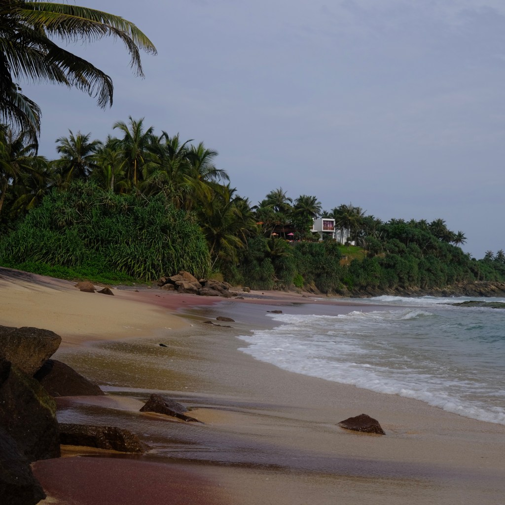 When in India I had skipped the famous beach state of Goa partly because I’d heard that Sri Lanka’s beaches were more beautiful and cleaner. There’s actually quite a lot of buzz right now regarding Goa versus Sri Lanka, but I’m willing to bet the beaches are better down here. Not only was I able to find near-endless stretches of empty, palm-fringed beaches; but they were most often remarkably clean as well. I spent eight days at the end of my trip working my way along the southern coast, stopping in four different beach areas. Some were more touristy than others, but I never once dealt with anything close to a sardine-packed beach. The photo below is from one afternoon when I was cycling along the highway near the coast. I stopped to check out an unassuming pathway to the ocean, only to find there was a stunning multi-colored beach that was otherwise hidden from view.