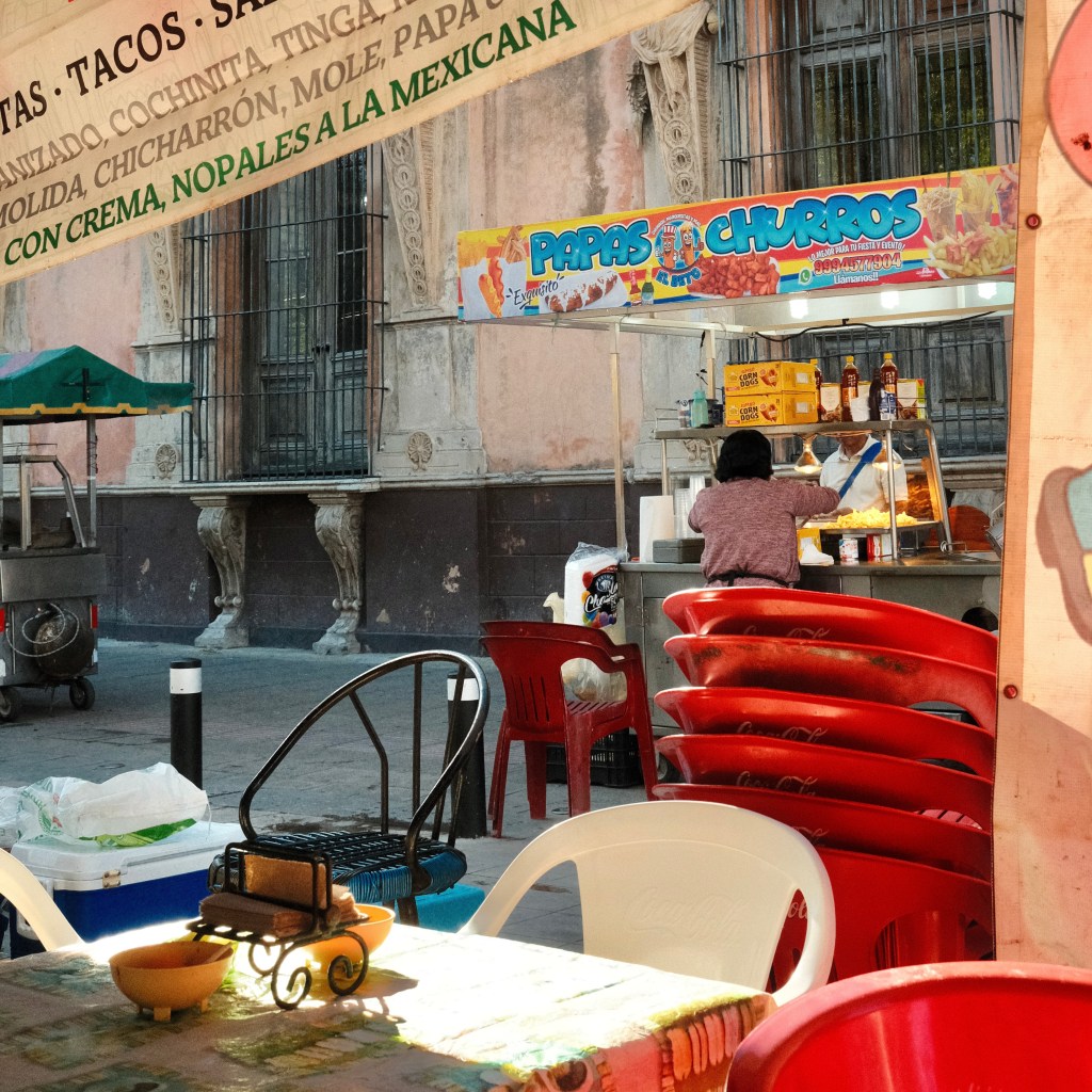A goal of mine for this New Year’s trip, no matter where I ended up, was to relax and not force myself to do too much. I’d had a fruitful year of travel and work, with trips that aligned with various purposes. For the year’s end I just wanted to unwind and reflect upon it all. Most travelers were out and about enjoying cenote tours and visiting the sites of Mayan ruins, but I was content with simple things in the city center: early mornings with instant coffee by the pool, taqueria visits whenever I liked, more time by the pool, and getting in my calisthenics workouts in the massive Parque La Plancha. Multiple days passed before I even took out my Fujifilm camera, though I’d made mental notes of where to return for photos. Mérida has a well preserved colonial city center, along with many old churches (including the oldest cathedral in all of Latin America!)